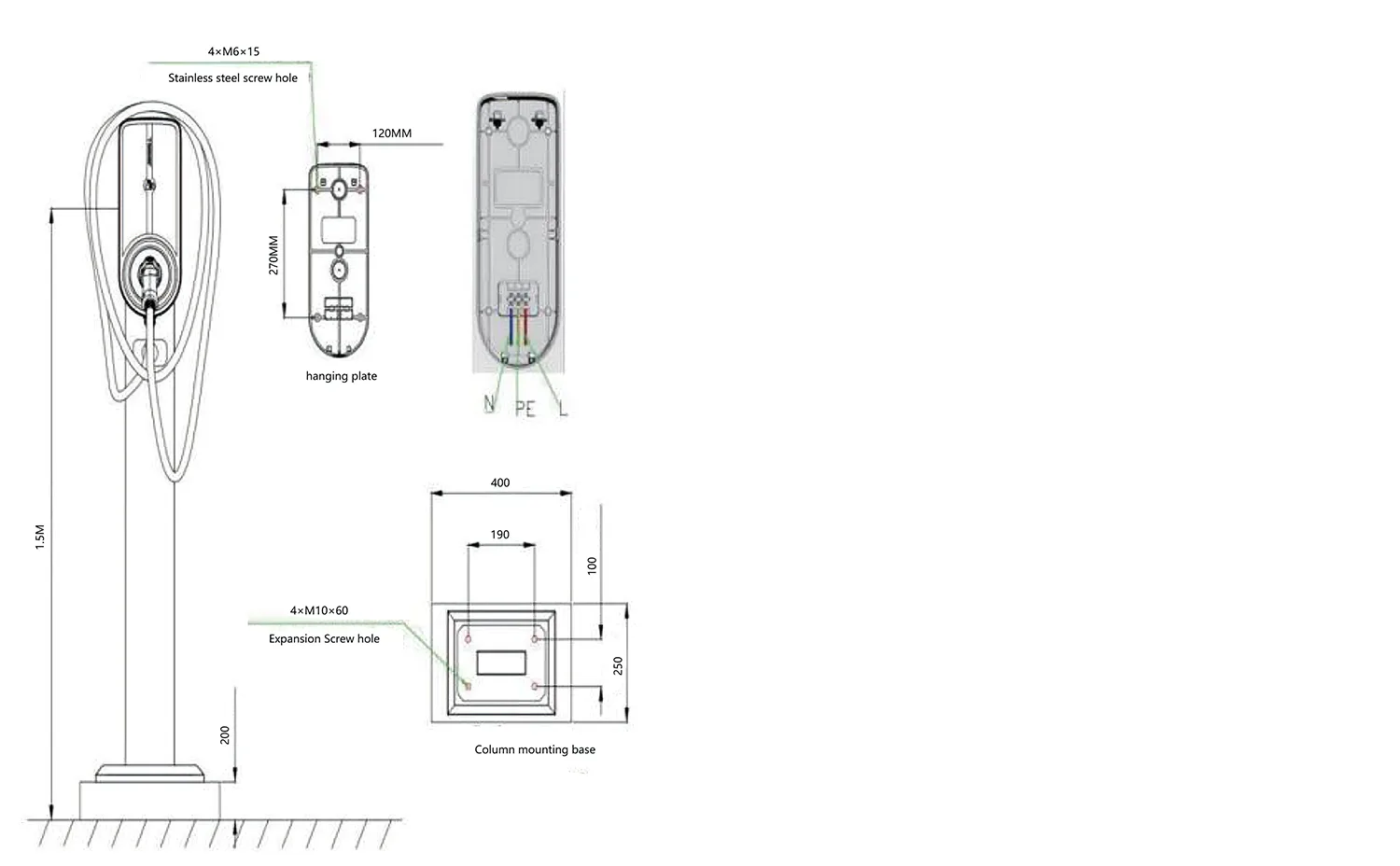 - Laite noudattaa tarkasti modulaarisia suunnitteluperiaatteita: tiedonsiirtomoduuli on plug-and-play, yhteensopiva Ethernet/GPRS/3G/4G-moduulien kanssa, jolloin käyttäjät voivat valita todellisten tarpeiden mukaan; rakenne on yhteensopiva sekä seinä- että lattiaasennusmenetelmien kanssa. Seinään kiinnitettävä latauspaalu voidaan muuntaa lattia-asennukseksi lisäämällä pylväs muuttamatta sen rakennetta tai lisäämällä muita lisävarusteita.