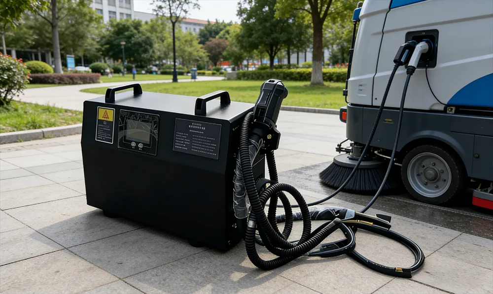 Sähkötrukkien ja puhdistuslaitteiden korkean taajuuden ulkokäyttöön vastaamiseksi se on varustettu IP41-pöly- ja vedenpitävällä kuorella, joka kestää sadetta, lunta ja pölyä. Kevyt alumiiniseosrunko painaa vain 55 kg, 18 % kevyempi kuin kilpailijat, joten se on helppo siirtää ja ottaa käyttöön.