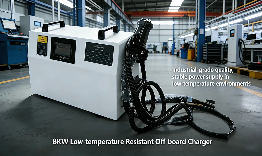 8KW:n matalan lämpötilan kestävä off-Board Charger on suuritehoinen riippumaton latauslaite, joka on erityisesti suunniteltu alhaisen lämpötilan ympäristöihin. Sen ydintehtävä on muuntaa kolmivaiheinen vaihtovirta vakaaksi tasavirtalähteeksi ja ladata tehokkaasti teollisuuslaitteiden, kuten sähkötrukkien ja pinoamiskoneiden, tehoakkuja.